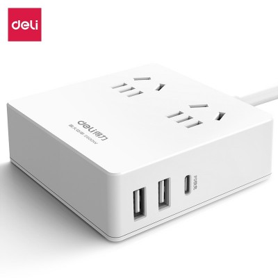 得力PO33650-44(1.5)插座_2组+3U_1.5米_PET盒装(白)(只)