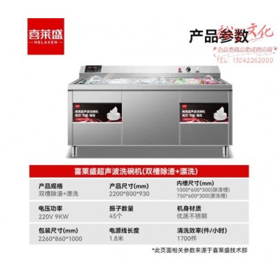 喜莱盛洗碗机商用超声波全自动大型洗碗洗菜机小龙虾清洗机酒店用2.2米双槽除渣 漂洗SKU:yzwhyp866295