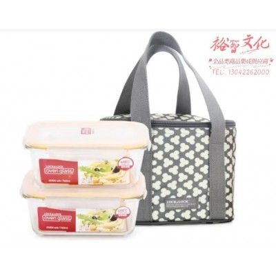 乐扣乐扣(LOCKLOCK)耐热玻璃保鲜盒便当盒两件套配三叶草便当包(740ml*2)LLG429S907SKU:yzwhyp866606