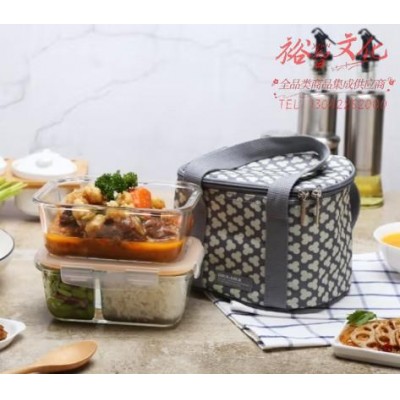 乐扣乐扣(LOCKLOCK)保鲜盒玻璃分格饭盒耐热便当盒配三叶草便当包(740ml 630ml分格) LLG429S910SKU:yzwhyp866608