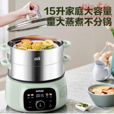 苏泊尔(SUPOR)电蒸锅 电煮锅 电火锅 家用多功能蒸包子锅 15升大容量电热锅 分体式可拆洗多用途锅ZN28YC908SKU:yzwhyp866922