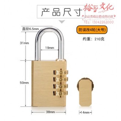 海斯迪克 黄铜挂锁 密码锁 行李箱防盗锁 防误改密码 4轮(大号) HKT-248SKU:yzwhyp866969