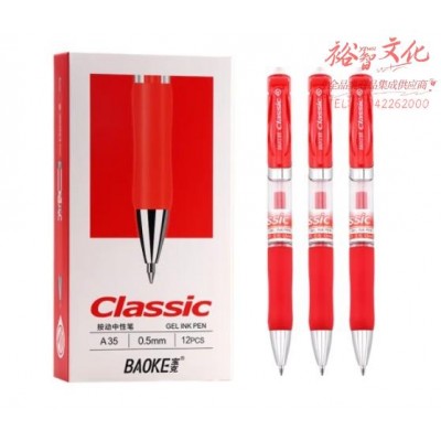 宝克(BAOKE)A35 0.5mm红色按动中性笔办公签字笔 子弹头水笔12支/盒SKU:yzwhyp867207