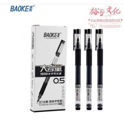 宝克(BAOKE)PC5008 巨能写中性笔黑色0.5mm 办公学习中性笔会议笔 10支/盒SKU:yzwhyp867211