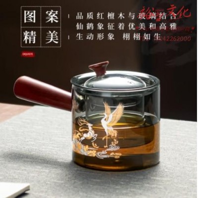 首页 > 用具 > 其他厨房用具 > 忆壶茶 玻璃茶壶泡茶侧把壶温茶煮茶器玻璃茶具木把过滤电陶炉煮茶壶茗香黑色竖纹款SKU:yzwhyp867325