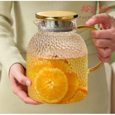 忆壶茶凉水壶玻璃冷水壶耐高温高硼硅大容量家用冰凉白开饮用花果茶壶 1.8L锤纹凉水壶SKU:yzwhyp867330