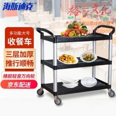 海斯迪克 HK-727 三层塑料小推车 加厚大号塑料餐车 收碗碟车送餐车上菜车 黑色SKU:yzwhyp867478