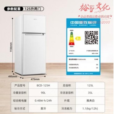 奥马(Homa) 125升 双门省电小冰箱 小型电冰箱家用 出租房宿舍冷藏双开门两门二门 白色 BCD-125HSKU:yzwhyp867501