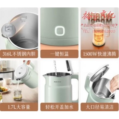 奥克斯(AUX)电水壶热水壶烧水壶 1.7L无缝内胆双层防烫家用电热水壶316L不锈钢开水壶 一键保温恒温15A2B05WSKU:yzwhyp867736