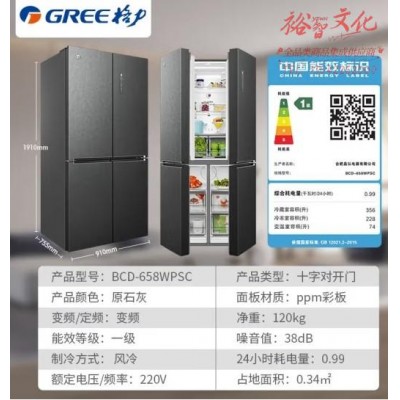 格力(GREE) 晶弘658升十字对开门风冷无霜一级变频 -33℃深冻 母婴恒温 除菌净味以旧换新BCD-658WPSC/原石灰SKU:yzwhyp867809