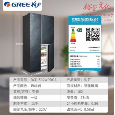 格力(GREE) 晶弘502升对开门冰箱 一级能效变频 -33℃深冻宽幅变温双开四开多门电冰箱 BCD-502WPDGA/云岫岩SKU:yzwhyp867811