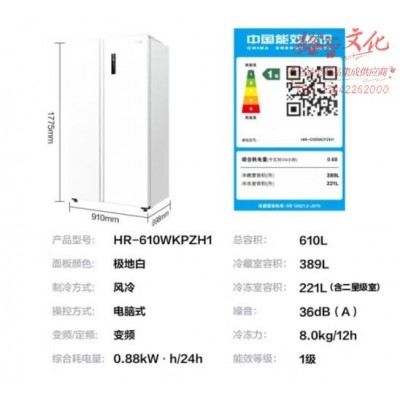 华凌美的出品610升超大容量对开门双开门一级能效风冷无霜WiFi智能家用电冰箱HR-610WKPZH1白色超薄SKU:yzwhyp867812
