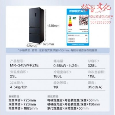 美的(Midea)冰箱325升级款328升法式多门四门小型家用大容量变频一级能效电冰箱风冷无霜三档变温MR-345WFPZ1ESKU:yzwhyp867819