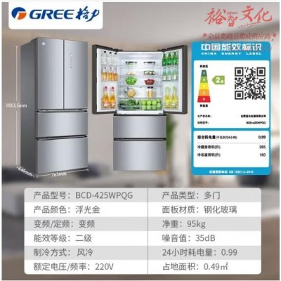 首页 > 电气设备 > 电冰箱 > 格力(GREE) 晶弘425升法式多门家用智能电冰箱风冷无霜大容量养鲜 离子长效净味 以旧换新BCD-425WPQG/光辉银SKU:yzwhyp867823