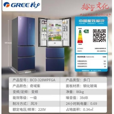 首页 > 电气设备 > 电冰箱 > 格力(GREE) 晶弘328升十字对开四门家用冰箱 节能一级变频-33℃深冻 风冷无霜 除菌净味电冰箱 BCD-328WPFGASKU:yzwhyp867824