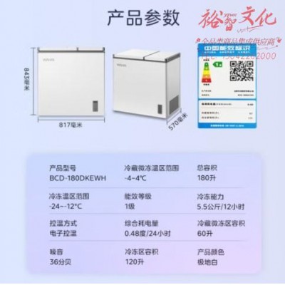 华凌180升双温冰柜家用商用囤货双箱冷柜冷藏冷冻速冻冰柜双温冷柜卧式冰箱BCD-180DKEWHSKU:yzwhyp867831