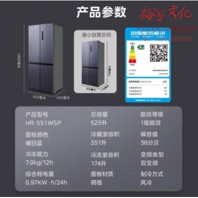 华凌 美的冰箱出品551十字对开冰箱一级能效双变频风冷无霜PT净味多门大容量囤货家用HR-551WSPSKU:yzwhyp867836