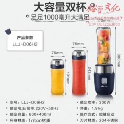 小熊(Bear)榨汁机 家用便携榨汁杯 果汁机 多功能迷你随行杯 搅拌杯 双杯 LLJ-D06H2 0.4 0.6LSKU:yzwhyp867868