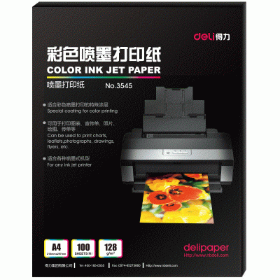 首页 > 纸及纸质品 > 纸及纸板(不包含复印纸) > 得力(deli)3545彩色喷墨打印纸100张/包128gA45包装