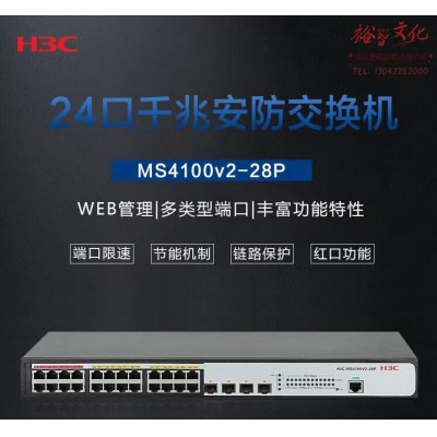 新华三(H3C)安防监控24口千兆电 4千兆光纤口二层网管企业级网络交换机 高速稳定/链路聚合 MS4100V2-28PSKU:yzwhyp867956