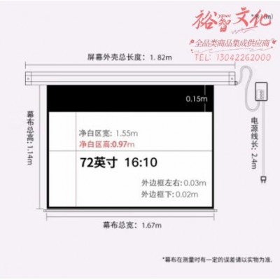 悟印像 72英寸16:10 电动幕布长焦投影机幕布家用办公投影仪高清幕布150度全方位展示白塑金属外罩HT7003SKU:yzwhyp867984