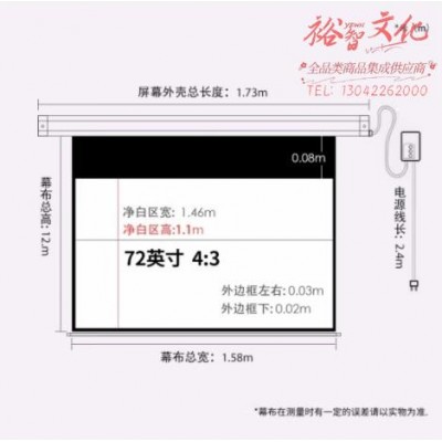 悟印像 72英寸4:3 电动幕布长焦投影机幕布家用办公投影仪高清幕布150度全方位展示白塑金属外罩H7001SKU:yzwhyp867986