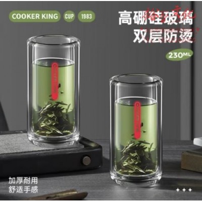 炊大皇玻璃杯耐高温简约家用双层高硼硅玻璃水杯两只装透明色230ml*2SKU:yzwhyp868079