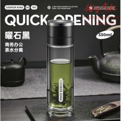 炊大皇玻璃杯茶水分离耐高温防爆防摔泡茶杯大容量茶杯黑色330ml SK33A2SKU:yzwhyp868082