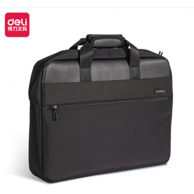 得力63799 简约素版公文包电脑包(黑色)(只)办公手提袋会议包事务包 加厚大容量商务拉链袋电脑公文包