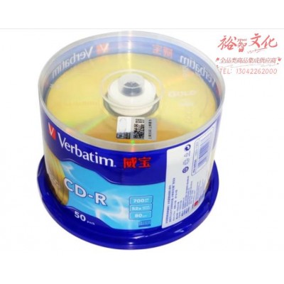 威宝(Verbatim)CD-R 光盘/刻录盘 52速700MB 黄钻 桶装50片 空白光盘 台产41735SKU:yzwhyp868280