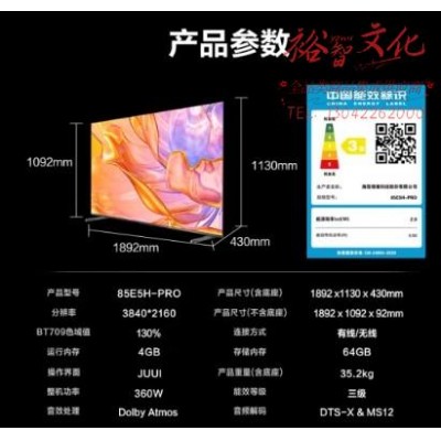 首页 > 广播、电视、电影设备 > 电视设备 > 普通电视设备(电视机) > 海信电视85E5H-PRO 85英寸 多分区控光 4K 144Hz智慧屏 2.1声道独立低音炮 液晶平板电视机SKU:yzwhyp868350