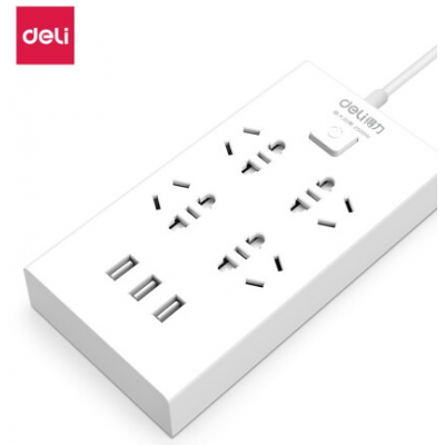 得力TYU18284-44插座_6组+3U_3米_彩盒装(白)(只)