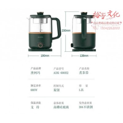 澳柯玛(AUCMA)1.2L养生壶煮茶器喷淋式煮茶壶烧水壶蒸茶电热水壶玻璃茶壶泡茶花茶壶黑茶 ADK-600H2SKU:yzwhyp868605