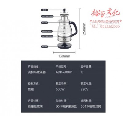澳柯玛(AUCMA)1L养生壶煮茶器喷淋式煮茶壶烧水壶蒸茶电热水壶玻璃茶壶泡茶花茶壶黑茶 ADK-600H1SKU:yzwhyp868606