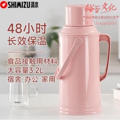 清水(SHIMIZU)老式大号热水瓶大容量保温壶玻璃内胆暖瓶学生宿舍办公开水瓶1061 樱花粉 3.2LSKU:yzwhyp868681