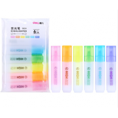得力s628 6色荧光笔醒目标记笔水性彩色记号笔 6支/袋S628 5袋/组大容量水性彩色手帐用记号笔