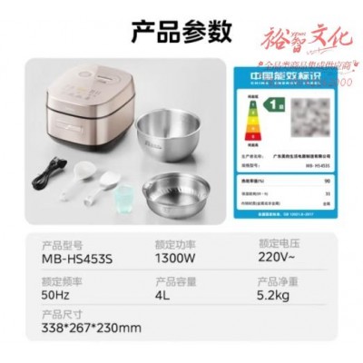 美的(Midea)风动稻香0涂层云朵系列4升3-8人无涂层电饭煲电饭锅 1300W电磁IH加热不锈钢内胆家用MB-HS453SSKU:yzwhyp868970