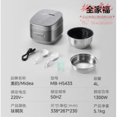 美的(Midea)风动稻香Pro电饭煲电饭锅4L立体IH电磁加热一键双层快速煮家用智能电饭煲MB-HS433(3-8人)SKU:yzwhyp868971