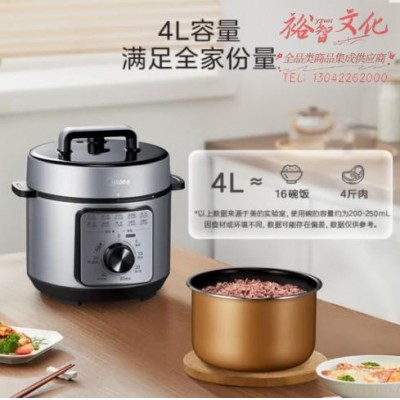 美的(Midea)智能电压力锅4L家用多功能 旋钮易操作 易清洁不粘内胆 开盖火锅 高压锅MY-E4809(2-6人食用)SKU:yzwhyp868983