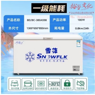 雪花【现货速发】冰柜商用家用大容量卧式冰柜冷柜冷藏冷冻转换柜速冻冷冻展示柜 598单温智能款【铜管一级能效】SKU:yzwhyp869043