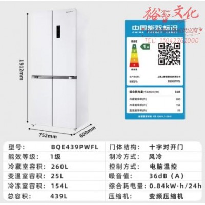 上菱439升 超薄零嵌入式 四开门冰箱十字门双开门嵌入式家用变频一级能效大容量底部散热BQE439PWFLSKU:yzwhyp869087