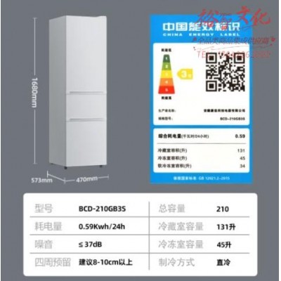 康佳210升三门小型家用电冰箱三开门三温区中门软冷冻 节能省电低噪超薄 两天仅约一度电BCD-210GB3SSKU:yzwhyp869095