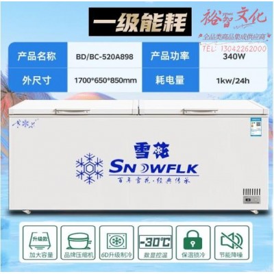 雪花【现货速发】冰柜商用家用大容量卧式冰柜冷柜冷藏冷冻转换柜速冻冷冻展示柜 898单温智能数显款【铜管一级能效】SKU:yzwhyp869100