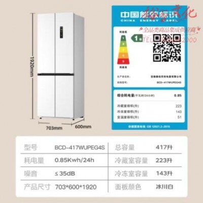 康佳小蛮腰60cm超薄零嵌入式417升十字对开四开门冰箱双循环家用变频一级能效底部散热BCD-417WUPEG4SSKU:yzwhyp869105