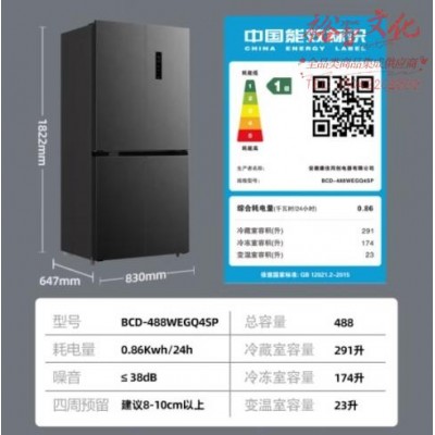 康佳488升15天生态原鲜超薄嵌入式无霜双循环一级能效双变频十字对开双开四开门电冰箱BCD-488WEGQ4SPSKU:yzwhyp869112