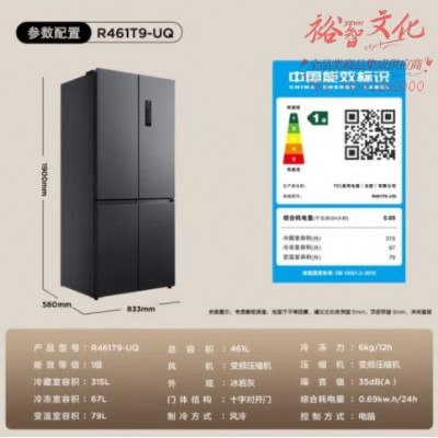 TCL 461升T9十字门超薄平嵌冰箱 58cm超薄嵌入式 宽幅变温杀菌除味双循环一级能效双变频冰箱 R461T9-UQSKU:yzwhyp869130