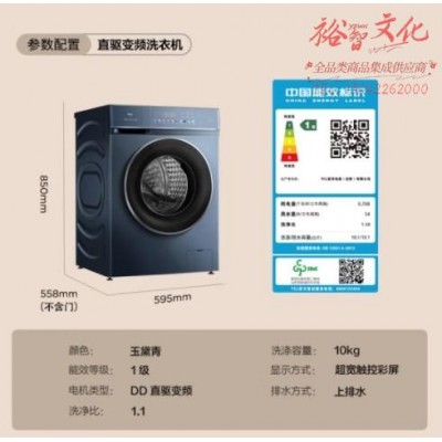 TCL 10KG直驱变频洗衣机T9 除菌除螨 洗净比1.1 超宽彩屏除菌除螨轻音洗涤 全自动家用滚筒洗衣机 G100T9-D玉黛青SKU:yzwhyp869150