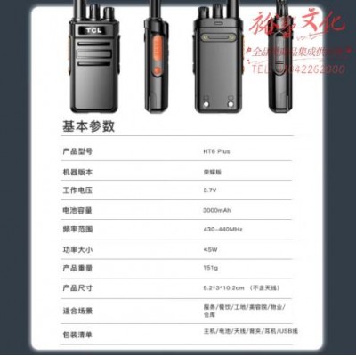 首页 > 广播、电视、电影设备 > 组合音像设备 > 闭路播放设备 > TCL【双台装】HT6 Plus荣耀版对讲机 专业大功率远距离工地酒店户外商务办公无线电台SKU:yzwhyp869201