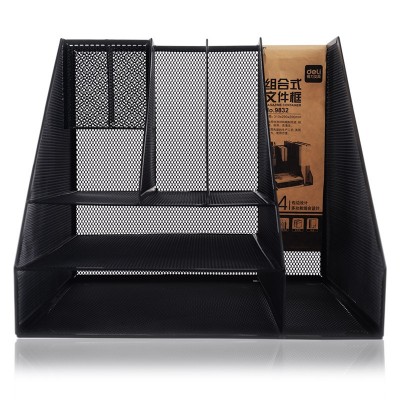 得力9832组合式文件框(黑)多功能金属网材组合式文件框 分层收纳文件栏/文件筐/资料框