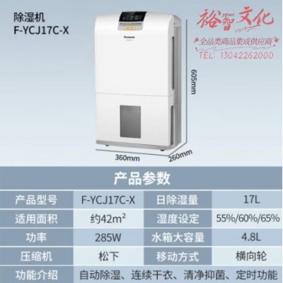 首页 > 电气设备 > 调湿调温机 > 松下(Panasonic)除湿机/抽湿机 F-YCJ17C-X智能家用17L干衣防霉净化卧室地下室轻音吸湿器 大功率除湿空气干燥机 17L/天 40-70㎡ 家用F-YCJ17CSKU:yzwhyp869697